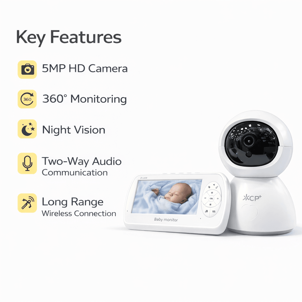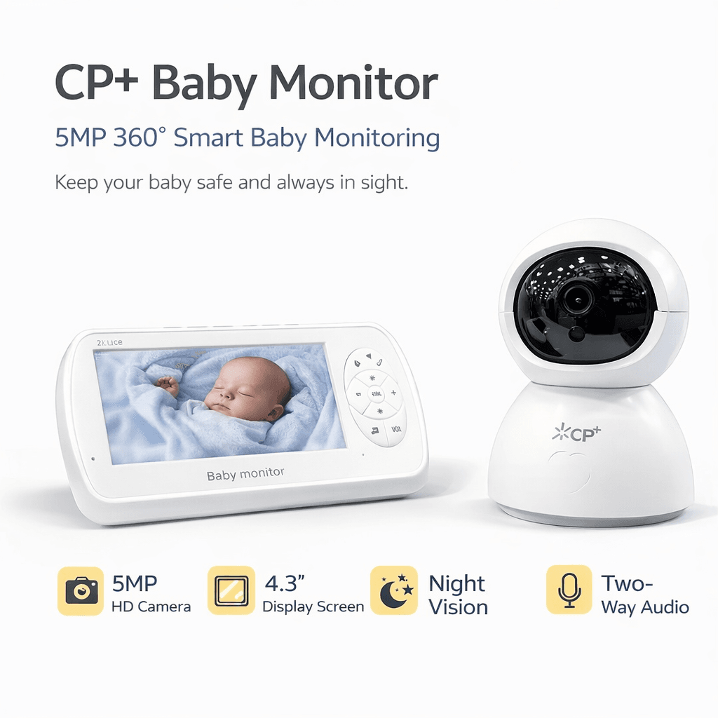 The CP+ Baby Monitor redefines parental monitoring, offering advanced features and seamless functionality for continuous monitoring. With its 5MP 360° camera, this monitor ensures comprehensive coverage of your baby’s room, leaving no angle unnoticed.