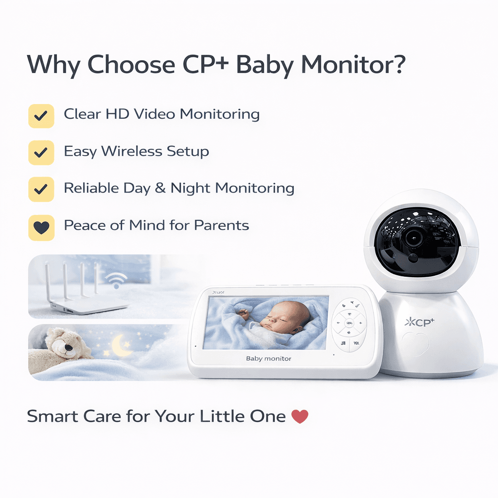 Please Note: The camera (baby unit) requires continuous connection to a power outlet for operation. With its reliable performance and advanced features, the CP+ Baby Monitor provides parents with the peace of mind needed to navigate parenthood confidently.
