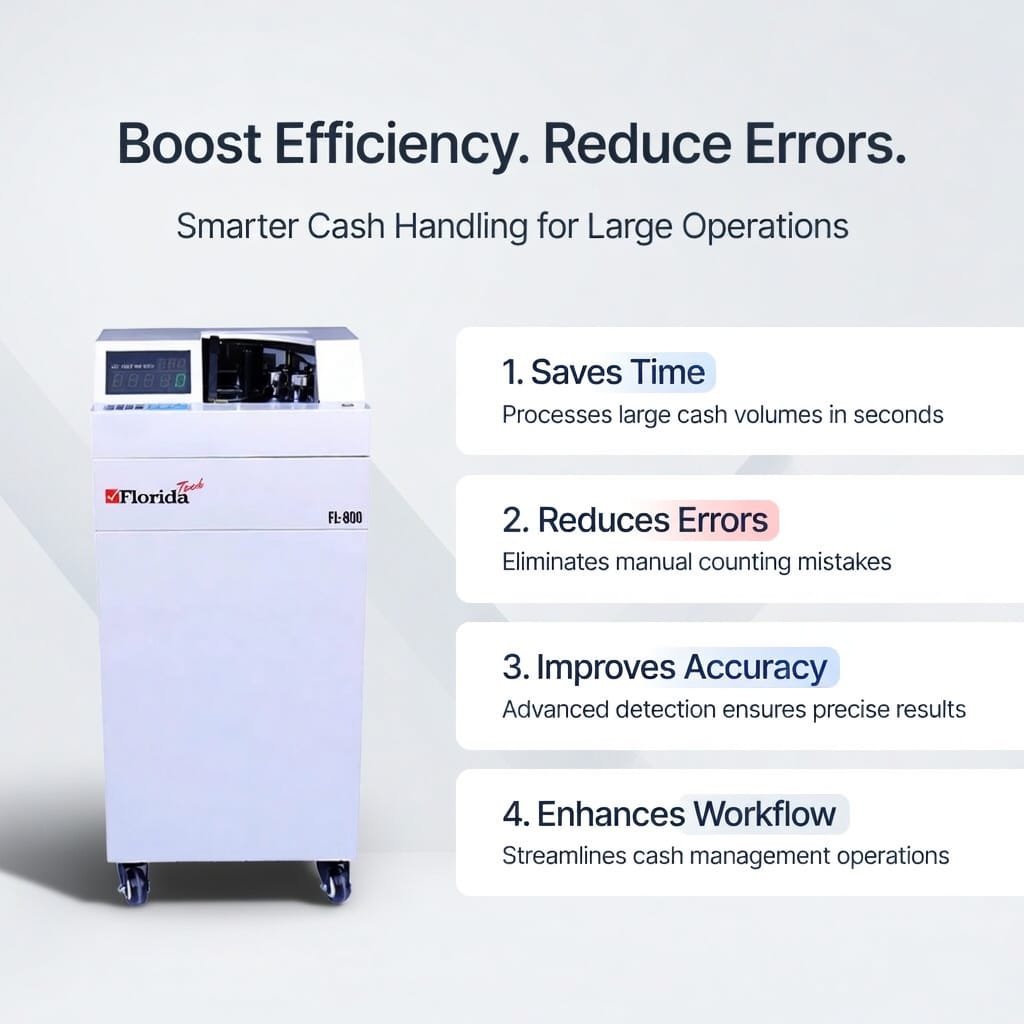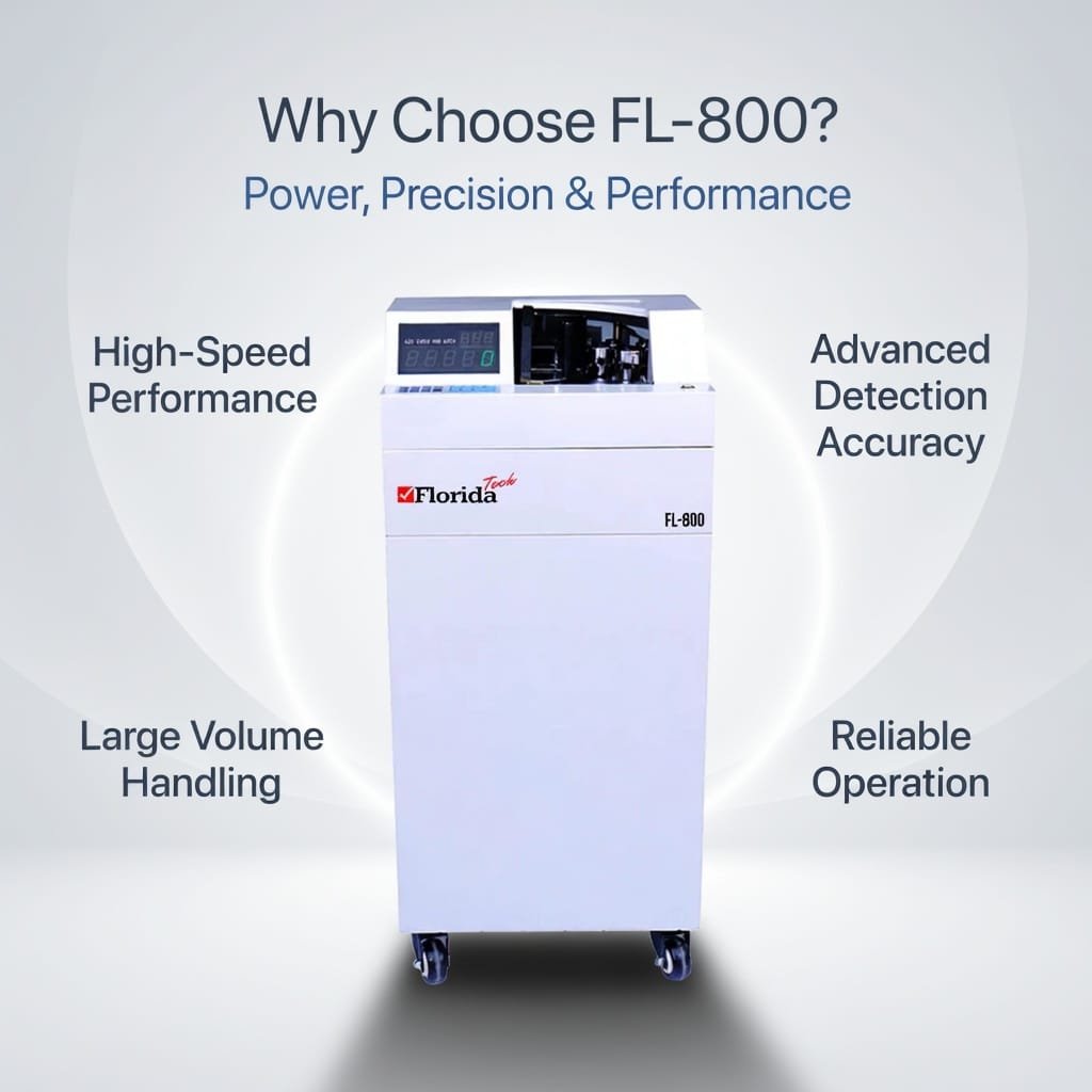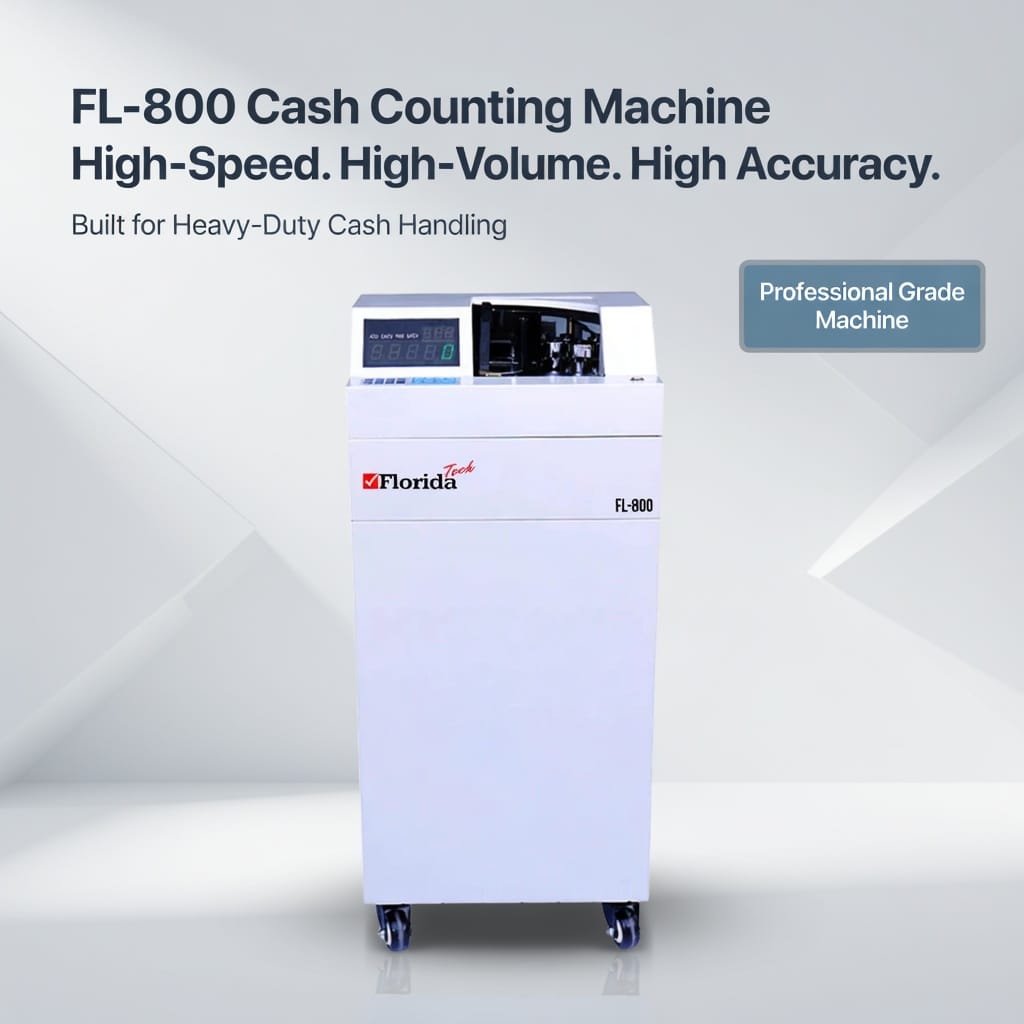 The FL-800 High Speed Vacuum Bill Counter is a professional-grade floor-type currency counting machine designed for high-volume cash handling environments. Featuring ultra-fast counting speeds up to 2000 notes per minute, batch and add functions, and external pole display, it ensures efficient and accurate cash processing. Ideal for banks, financial institutions, and large retail operations, the FL-800 delivers reliable performance, low noise operation, and advanced counting capabilities.