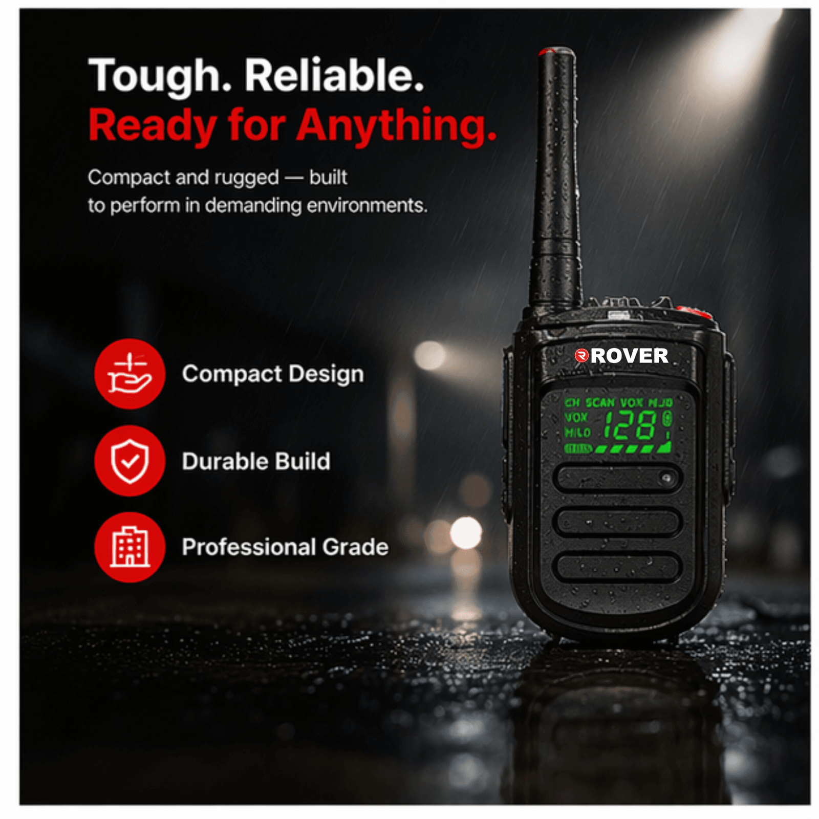 The ROVER R-4 UHF Two-Way Radio is a high-performance communication device designed to provide seamless, dependable, and professional-grade connectivity for security personnel, commercial teams, and operational staff in diverse environments. Engineered for clarity, durability, and multi-channel functionality, this radio is ideal for organizations that require organized and reliable communication across large spaces or multiple teams.