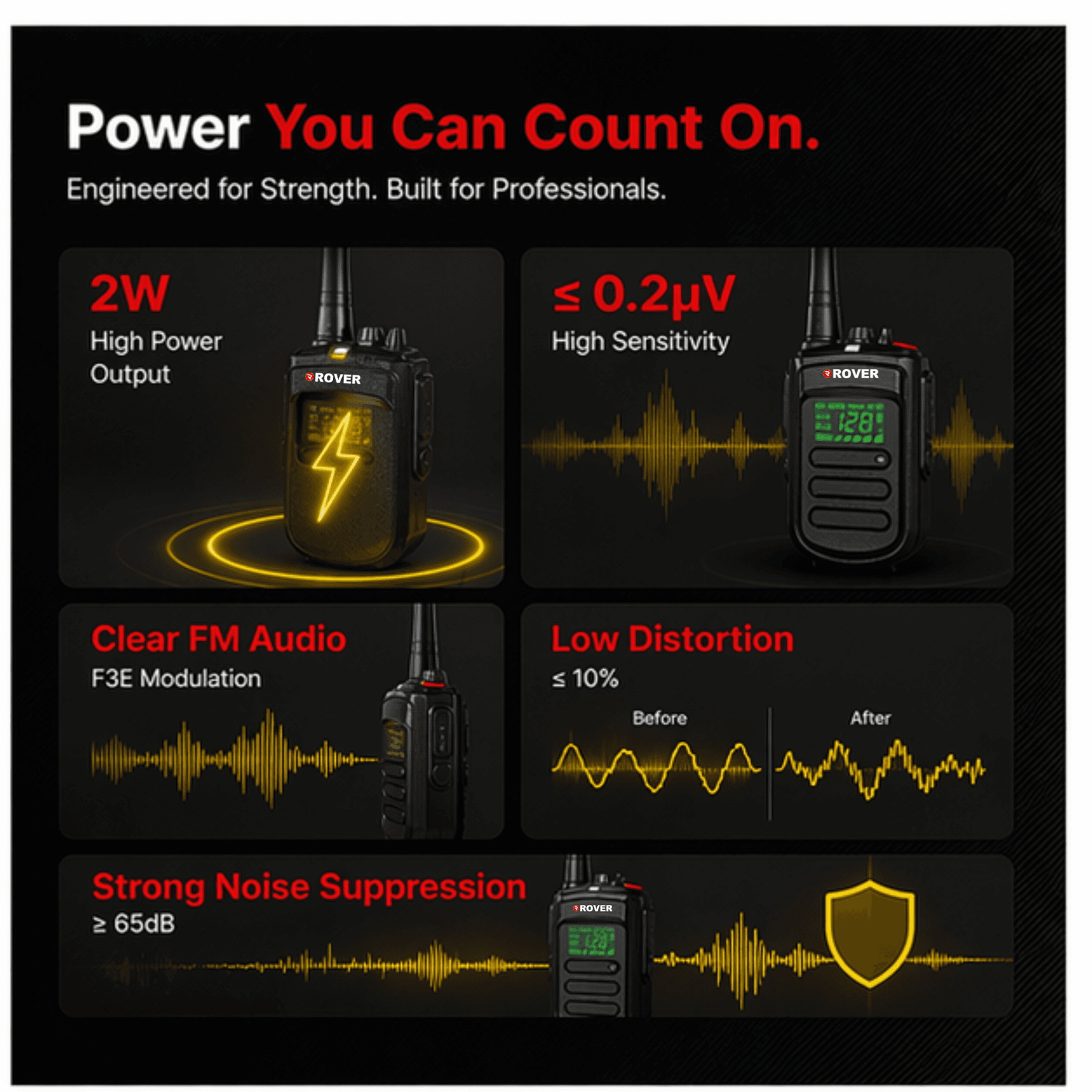 With robust UHF signal coverage, clear audio transmission, and versatile operational modes, the ROVER R-4 ensures that your team remains connected indoors and outdoors, across offices, construction sites, commercial facilities, and residential complexes. Its compact, ergonomic design and removable antenna make it a practical choice for daily professional use.